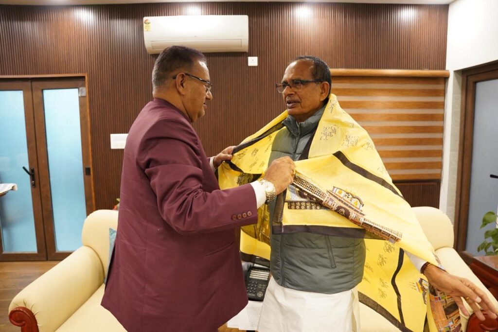 केंद्रीय कृषि एवं ग्रामीण विकास मंत्री शिवराज सिंह चौहान से शिष्टाचार भेंट करते सूबे के कृषि मंत्री गणेश जोशी