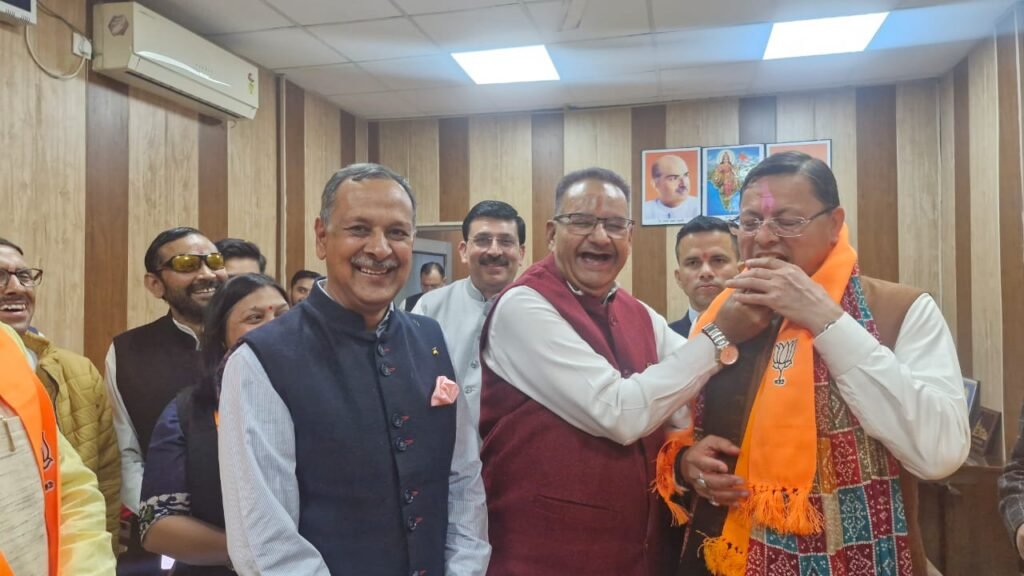 भाजपा प्रदेश कार्यालय में बधाई एवं शुभकामनाएँ देते हुए कैबिनेट मंत्री गणेश जोशी ने बिहार चुनाव की जीत को लोकतंत्र की बड़ी उपलब्धि कहा